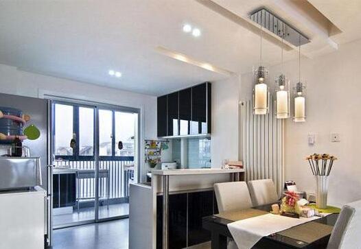 在客厅的设计上,平面做了一些调整, 原结构厨房旁边的小阳台仅是一个采光井。采光效果不理想,与业主沟通后,决定把这个阳台包进来.做为客卫的淋浴房。厨房没有采光和通风,靠人工照明和排气设备。 -