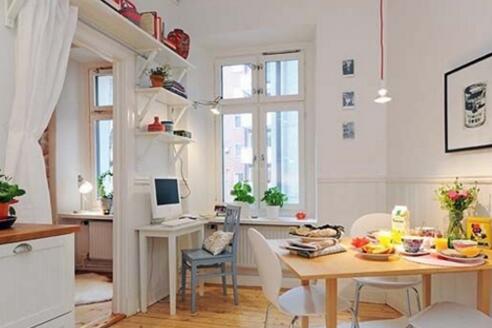 小空间厨房设计尽量以清爽的浅色为主,一般的家庭都把厨房装修成白色,一来干净,二来放大了空间,但是,白色的厨房也不是唯一的选择,只要搭配得好淡淡的彩色也可以营造出大空间。 -