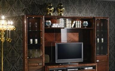 展示架是装饰品最好的舞台,与电视柜连为一体的展示架,可以让陈列品一目了然,同时也充当了主题墙的作用。其实不同材质的展示架会带给我们不一样的视觉效果,只要巧妙地搭配好,这面墙就会成为空间的焦点。