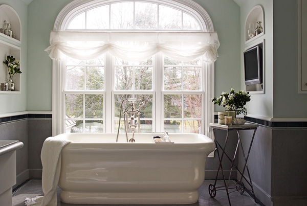 2、为忙碌的人士放松专用,七英尺宽的拱形窗户,带来郁郁葱葱的外景,长时间浸泡也不会无聊。