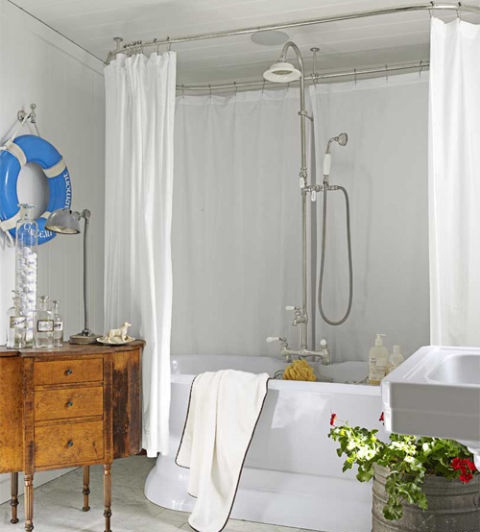 11、干净、现代的浴室,洁白的设计基调在蓝色救生圈的衬托下,更有生气。