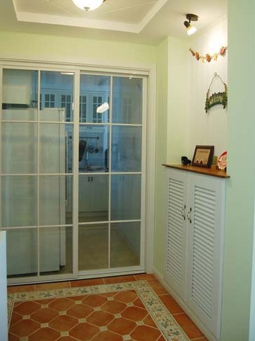 玄关是居室与外界接触的一个过渡空间,玄关里面一定的收纳空间显得必不可少,尤其是放置鞋子的位置。一片大面积的鞋柜拥有充分的空间放置鞋子,避免鞋子把多余的尘土带进室内空间。