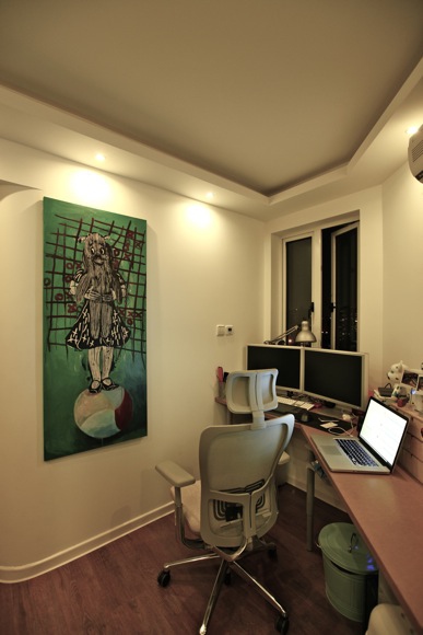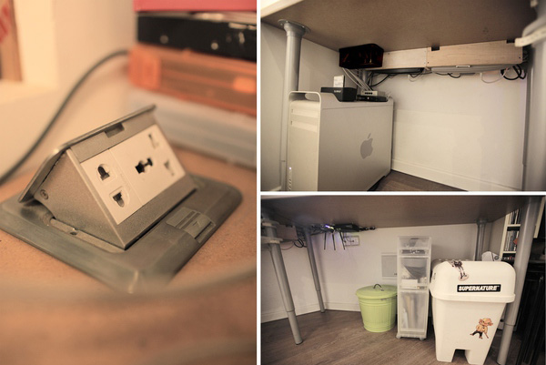 反正在桌子下面平时看不到~在这里可以连接和管理全家的网络系统~在卧室就可以看客厅电脑里的电影~