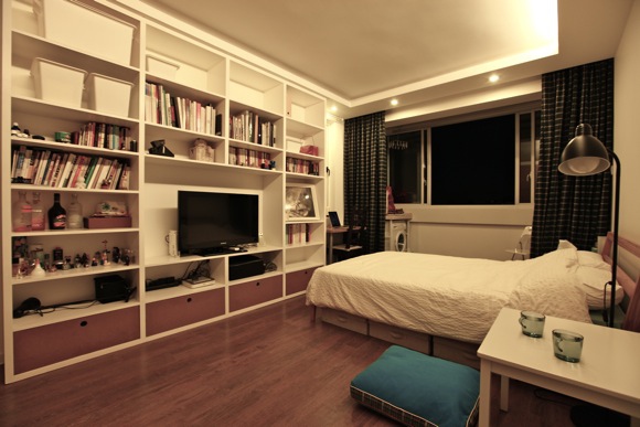 充分的利用每一厘米,床下,衣柜上,电视柜等都有很多空间可以利用~