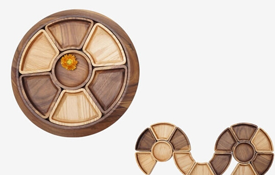 推荐理由:这款果盘是组合形式的,既可以规整地排列在大的圆盘内,又可以随意组合成右下角的图形,每个小格子可以放不同的糖果糕点,分类清晰,同时又不失趣味,有小孩的话也可以用来组合拼图玩,多好的事情。