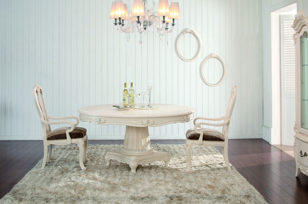 法式装修地面不适合由瓷砖或者木地板来唱主角,应该由地毯来担当,地毯最好选择色彩相对淡雅的图案,过于花哨会与法式浪漫宁静相冲突。
