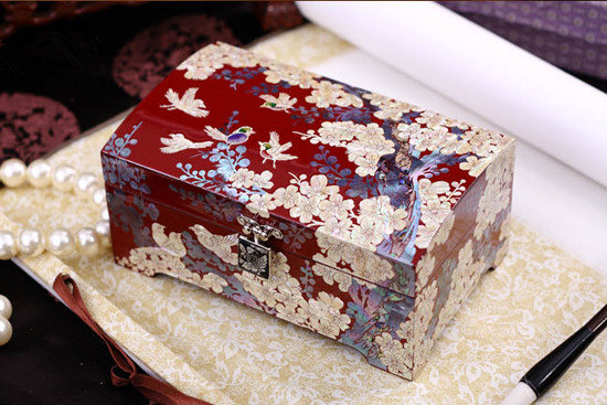 导购理由:这是一款高档大气的首饰盒,进口澳大利亚白蝶贝制作的外壳花纹,日本进口描粉打造栩栩如生的翠鸟图案,光线映射下贝壳流光溢彩,华丽非凡。