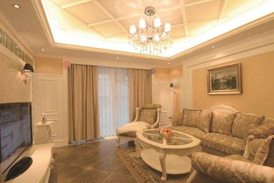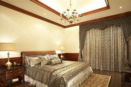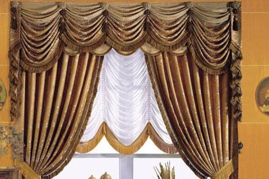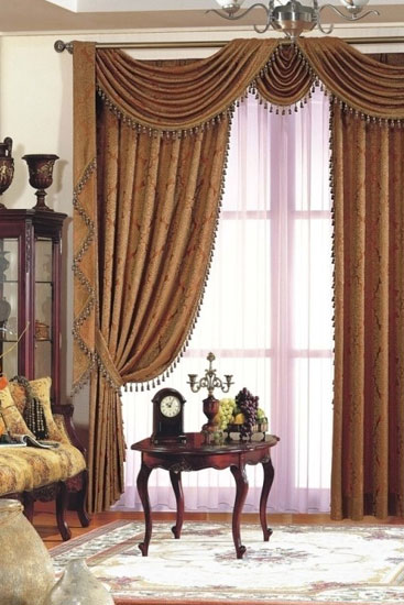 欧式风格的家居一般大厅宽敞,窗户比较高大,这样选择的窗帘应该更具有质感,比如考究的丝绒,真丝,提花织物。可以选用质地较好的麻制面料,颜色和图案也应偏向于跟家具一样的华丽,沉稳。暖红,棕褐,金色都可以考虑。另外一些装饰性很强的窗幔以及精致的流苏会起画龙点睛的作用。