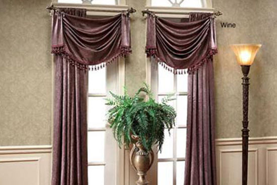 欧式风格的窗帘,多选用金色或酒红色这两种沉稳的颜色作面料,显示出家居的豪华感。有些布艺设计师会运用一些卡奇色、褐色等做搭配,再配上带有珠子的花边配搭增强窗帘的华丽感。面料选材上会多运用质感教厚重的绒质,以增强窗帘的华贵气质。
