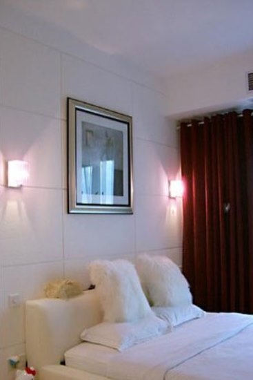 再来看看主卧室,床品选择了整套白色,喜欢这种素素的感觉,一点不张扬,两个白色毛绒靠垫,在硬朗的线条中显得很可爱。