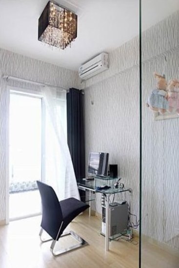 这是个小电脑间,旁边是大大的落地窗,特意选了个神色的不透光的窗帘,不开心的时候可以给自己一个幽暗的空间。不过还是更喜欢阳光,上网的时候可以晒太阳。每天早上,任阳光洒满房间,晒出一天的好心情。