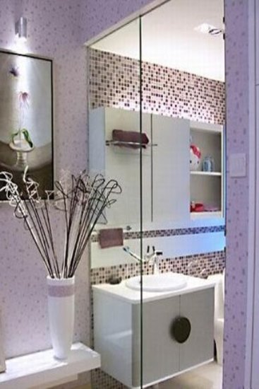 紫色的卫浴间,可爱又不失性感的颜色,女孩子喜欢的感觉。喜欢在家里的各个角落都摆上装饰花,喜欢透明的玻璃门,家的世界应该是简单纯净的。
