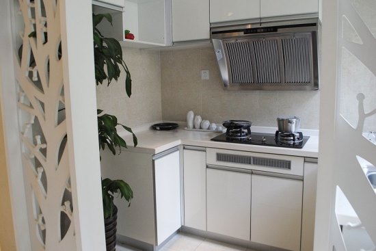 厨房水台设计为L型水台设计,转角位也能方便运用起来,实用且同时能将用水用火空间分开,提高了厨房安全性。