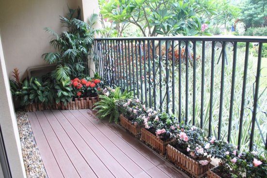 客厅外有超宽超长景观露台,铁艺栏杆将公共景观与个人空间隔开,同时不影响景观观赏,露台更可种花,享园丁之乐。