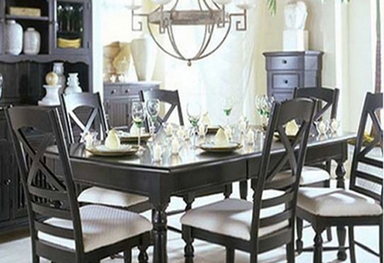 经典简约的欧式家具及其简单。桌面上配上基本的按设备,让这个装饰范例一点也不遥远,极其平民化的设计搭配。直接带有坐垫的椅子方便舒适之外,还在纯黑的餐桌中间夹杂了白色元素,使黑白相间的搭配,白里中有黑,黑里中有白,简约时尚的同时绝不审美疲劳。