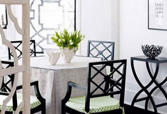 欧式风格餐厅以黑白线条为主组成家具布置的这个用餐空间,使酷酷的黑白炫风只是轻轻的掠过,搭配上台面上一颗绿色的小植物,整个用餐空间轻松而毫不压抑。由于线条组成的特性还使到用餐空间大量透光,让环境显得异常光亮、宽敞。