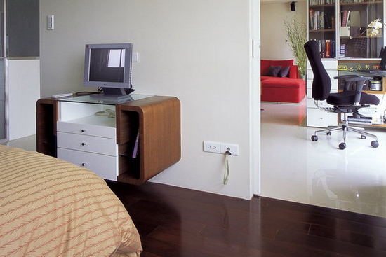 双动线-卧室设计为灵活的双动线,居住者可以透过拉门的开关,轻易调整未来十年的生活型态。这样将客厅与卧室分开,也是个很不错的选择方式。