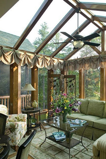 整个阳光房给人一种简约的古典氛围。仿古吊扇,配上简约风格的家具,让人在这享受阳光沐浴的时候,还可以充分感受到室外葱葱绿意带来的舒心。