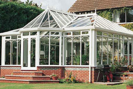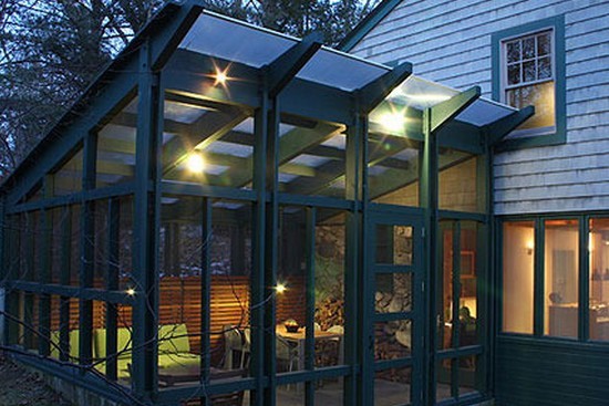 白色钢结构的阳光房配合玻璃的设计,让整个阳光房呈现出一种浪漫的感觉。如果想个自己打造一个阳光房的话,可以尝试这样的一种设计风格。