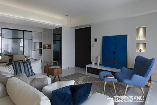 客厅电视墙局部镂空以清水模为段落,藉由光影投射点缀出展示效果。这样的一种设计让整个客厅给人一种自然舒适的感觉。