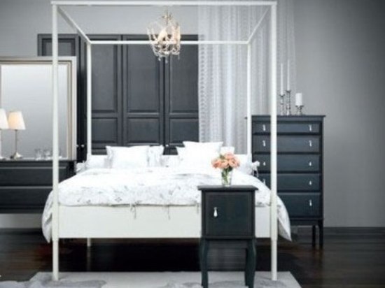 黑和白永远是最为般配的两种颜色,无论居家环境是什么风格,黑、白两色总是不可缺少的。白色的铁艺床犹如坠入黑色深渊的天使,没有任何装饰可言,极为简单的结构和造型却与周围的简约风格柜子相得益彰。