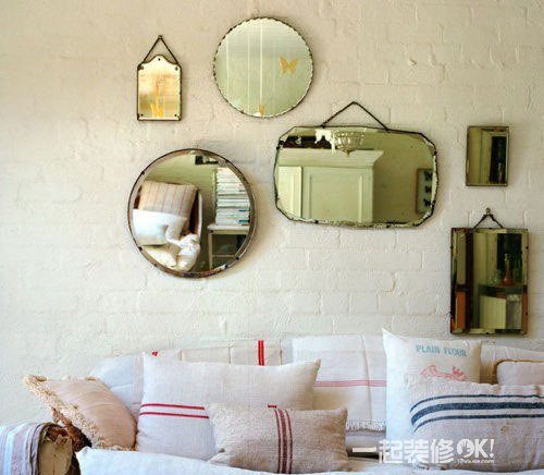 小编的话:对于小户型的任何一面空墙壁来说,镜子都是一个装饰品中的上上佳选,扩容空间感的最佳单品就是镜子了。设计师在这个客厅装修设计效果图中就强调了镜子的作用,主人心领神会的去挑选了不少具有复古范儿的小镜子,简简单单往墙面上一挂,就成了一款轻复古的客厅咯。