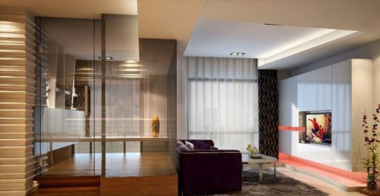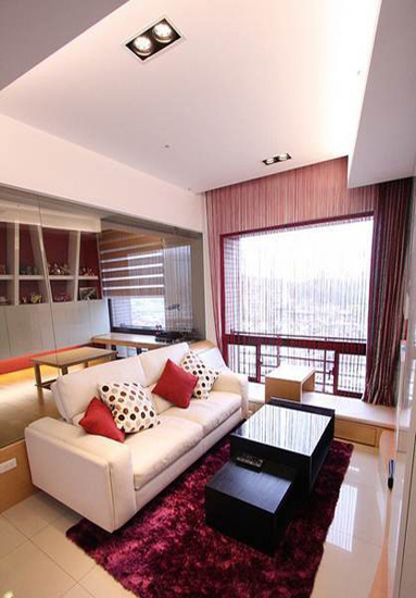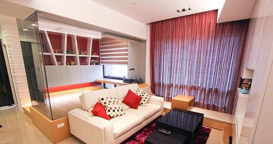 这样分隔以后有一部分客厅空间被划分到书房中去,所以客厅就显得小了许多,不过经设计师设计之后整体看起来倒还舒畅。