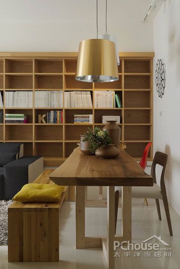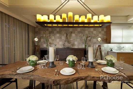 餐桌采用完整的原木切割,切面保有弧度与纹路,呈现最自然的细腻度,提供了家族聚会的最佳场域。