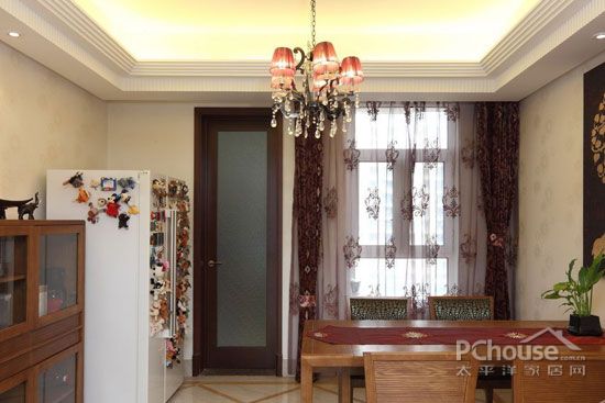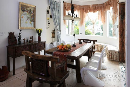 餐厅是开敞的空间格局,因此在空间的营造上,讲究与自然环境的相融与协调。泰国风情的桌旗及窗帘凭借其香艳的颜色,极适合营造节日氛围。