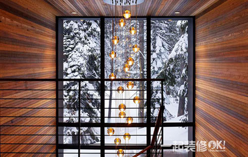 编辑的话:楼梯间也有这样的风景,的确让人欢喜不已。也是一整面墙来做这种景观窗,流畅的线条搭配室内风格,也恰到好处。墙面的木条设置搭配大面积的景观落地窗十分别致,呈现出极富动感的视觉效果,仿佛在光速飞向室外那美美的雪地。