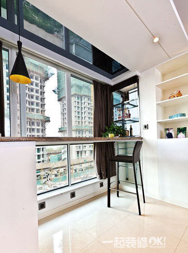 编辑的话:一定要说,前面都借鉴不到,那么这个案例你一定可以学到什么!将阳台打通是很多装修人群的做法,如果你住的地方不适合将阳台做成开放式,那么就做成可以给室内提供大量光线的景观窗吧。可推拉式的设计使用起来也很方便,在中下端部位,放一个搁架,舒适明亮的小小工作台或者餐台就打造完成了。