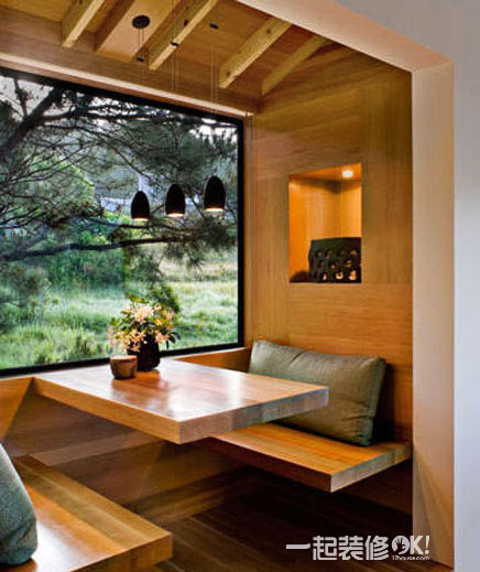 编辑的话:美景绝对是提升用餐感受的不二法门,根据窗台定制整套餐桌椅,不需要过于精致,高低错落的搁架,一个贴近自然景色的餐厅就应运而生了。