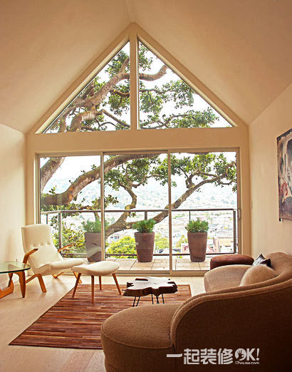 编辑的话:你有落地窗,他有飘窗,如果看到这个图里的景观窗,才会觉得真正的无敌。低矮小巧的落地窗搭配斜顶天窗,两者合二为一融为一体,呈现出来的视觉美感无法言语。找一块地毯,躺在窗户边上怎么都不会觉得够。