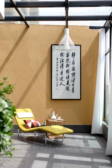 考虑到房屋中年人的性格和喜好,在转角置放中国风的柜子,再配上中国的传统字画,和谐温暖。希望在简约的风格上将中国传统的设计传承下去,这是每一个中国设计师的责任。