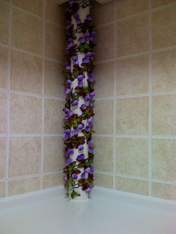 3、水管包起来会占用很大空间的,我家水管用的仿真树皮包的,非常美观,也很简单,以后水管堵塞拆装也方便。