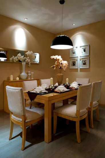 对于餐厅,最重要是使用起来要方便。餐厅无论是放在何处,都要靠近厨房,这样便于我们上菜,同时在餐厅里,除了必备的餐桌和餐椅之外,还可以配上餐饮柜,能够放一些我们平时需要用得上的餐具、饮料酒水以及一些对于就餐有辅助作用的东西,这样使用起来更加方便,同时餐柜也是充实餐厅的一个很好的装饰品。