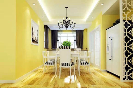餐厅的装修也要注意色彩,色彩要温馨一些,能够增加人的食欲。餐厅的色彩适合用明郎轻快的色调,一些橙色系列的颜色给人一种温馨的感觉,也能够让促进人的食欲。除了墙面的颜色外,对于餐厅之中的窗帘,家具,桌布的色彩也要合理的搭配起来。灯光也是调节餐厅色彩的一种非常好的手段,另外在餐厅之中,为了增加食欲,还可以增加一些画,也可以增加一些植物,都可以起到调节开胃的效果。