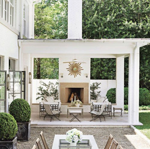 这个花园呈现出苏州园林的味道,白色墙面上的爬山虎,使整个空间都充满了清新的绿意。墙边壁炉里正劈啪作响,让你感受到浓浓的暖意。