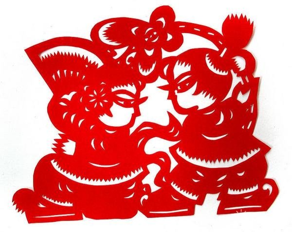 窗花剪纸的外轮廓和窗架之间要求舒密有致,且构图格局均衡,除了具有装饰美好的因素外,它还能起到比较好的防寒和透风流通作用。为了追求一种清新、亮堂、明快的室内装饰效果,窗花剪纸大多采用细线造型,从而达到一种镂空玲珑的视觉效果。