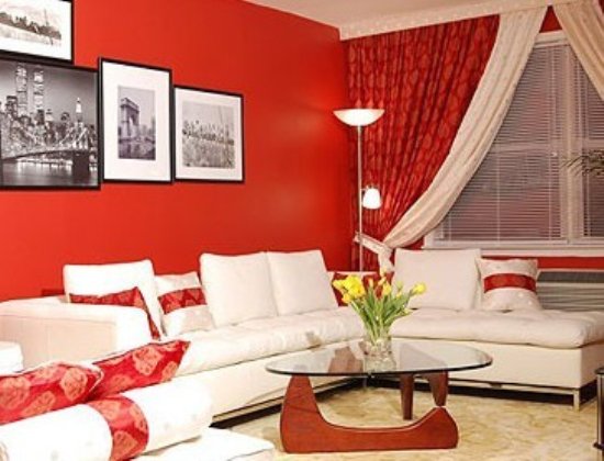 红色的墙面跟宜家风黑白相框视觉冲击力墙,饱满的红色刷满整面墙,沙发背景墙放上一些相框来简单摆放,黑色相框里黑白照片都是关于时光的印记。