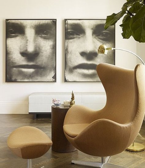 大大的人像作为装饰画摆在这样的一个空间里,配合造型别致的家具,空间艺术感散发出来。装饰画十分的简介,人物清晰的表情却没有清晰地轮廓,意境非常唯美,让人遐想连篇。