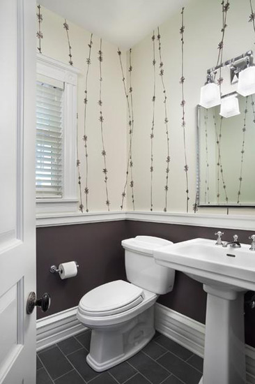 装饰tips:雪白的百叶窗、墙角边,为卫生间带来典型的美式风格装饰。比起一般单纯的卫生间装修,运用清新的墙纸给墙面钓上新春的杨柳,让人置身于卫生间的时候如沐春风,为洁净、经典的美式卫生间带来不一样的新感觉。