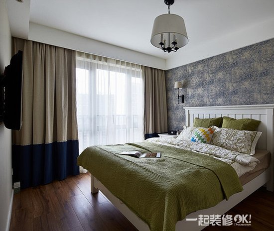 小编的话:比起纯色窗帘,拼色窗帘能为空间注入更多的色彩元素。米黄色与深蓝色的搭配,在视觉上划分出了层次感。