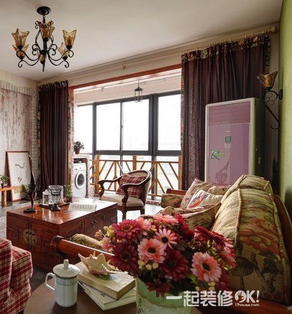 小编的话:田园风格不仅仅只有碎花元素,深棕色的窗帘搭配印花蕾丝边带来的是花园中的泥土般的芬芳,整间居室颇有美式乡村的风采。