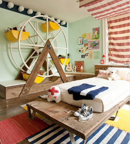 把最古老的灌溉工具——水车搬到儿童房,一方面为孩子普及知识,另一方面,特别设计的收纳型水车可以让孩子对收纳充满兴趣。每个收纳小槽都可以分类存储不同的玩具,“水车”转起来,孩子们的乐趣也一同转来了。
