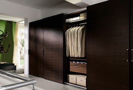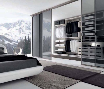 方案分析:玻璃门制造通透的感觉,暗色玻璃可以阻挡一些衣帽间内部的凌乱。内部结构设计要考虑完全,悬挂、平放、抽屉、小隔间等都要适当选择。