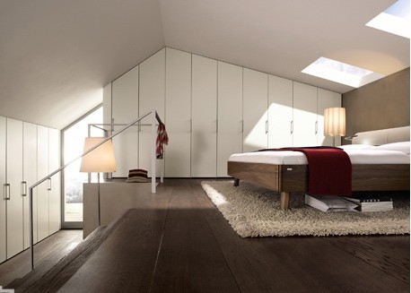外观提示:斜屋顶下,一般采光不会很理想,所以建议选择浅色衣柜面板。