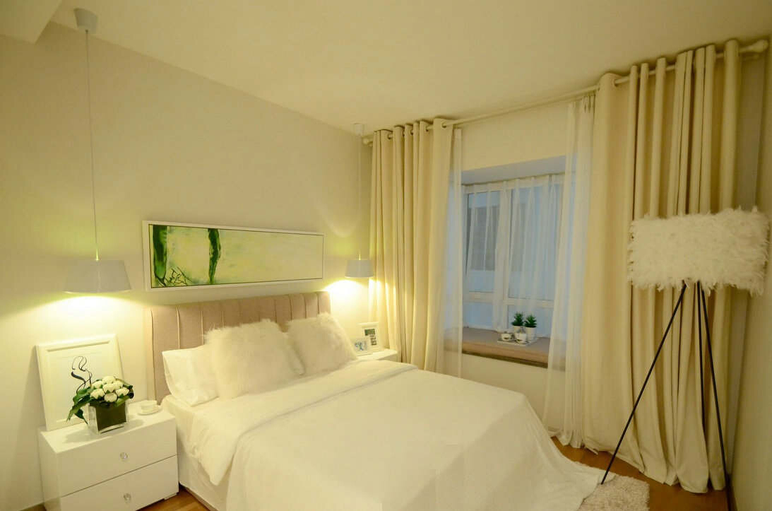 卧室(小户型卧室搭配方案)是人们休息的地方,所以应该以让人舒服安稳的休息为前提,而窗帘在居室中占有较大面积,而且是在最亮地段,所以选择时会让人患的选择纠结症。卧室窗帘的选择也奠定了整个卧室的风格定位。窗帘色彩的选择,重在“协调”。其色调、质地需与房间的家具、居室的装潢风格以及室内的墙面、地面、天花板相协调,以形成 统一和谐的整体美室内空间搭配。