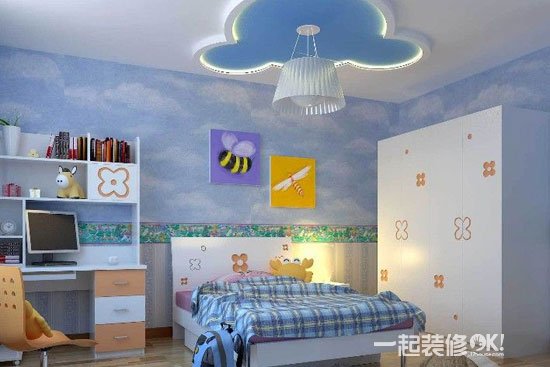 小孩子装修设计讲究童趣,但是也要注意环保建材的选择,儿童房选用硅藻泥环保健康,吸收空气有害物,充满童趣,色彩明艳多彩。