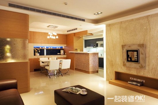 现代简约风格客厅设计配上瓷砖装饰的电视背景墙,让整个客厅更加的时尚简约,同时也能让人感受到瓷砖的自然魅力。
